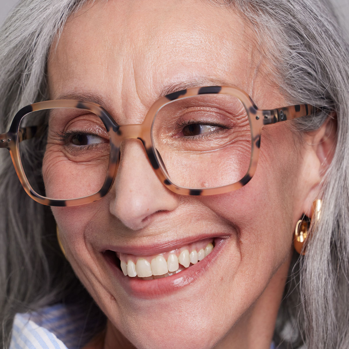 Des lunettes loupe pour presbytes, de forme carrée, oversize, rétro.