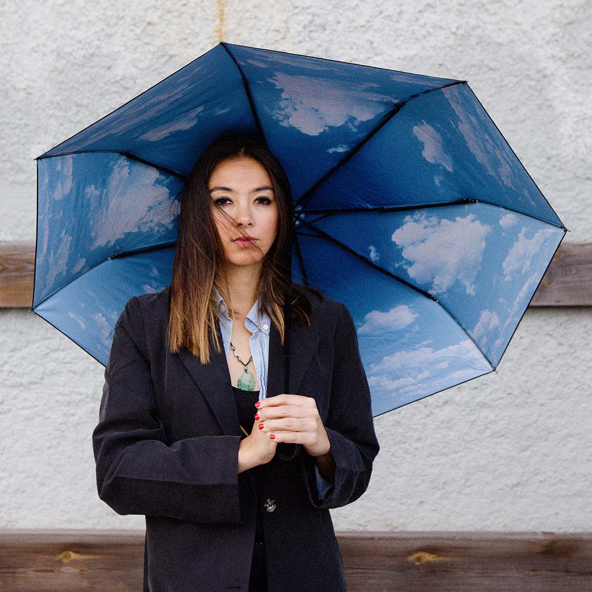 Avec ce parapluie original vous êtes prêts à braver toutes les intempéries avec style. La poignée en caoutchouc de taille parfaite est équipée dun bouton pour la fonction d’ouverture et de fermeture.