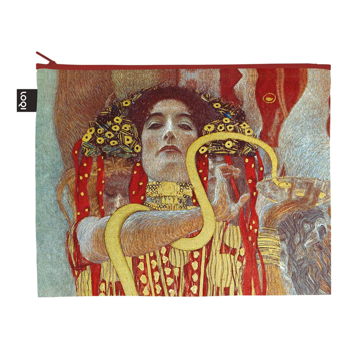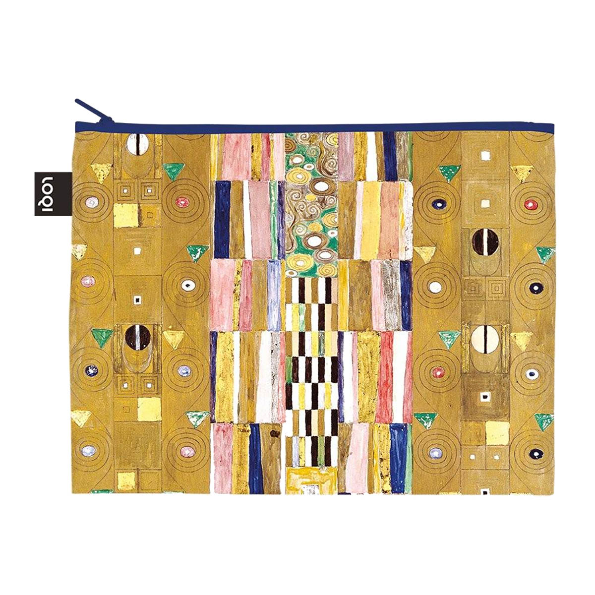 La célébration sentimentale de l’amour. La traduction sensuelle de la féminité. La formation glorieuse des formes.Découvrez la lumineuse période dorée de Gustav Klimt avec ces poches zippées recyclées.