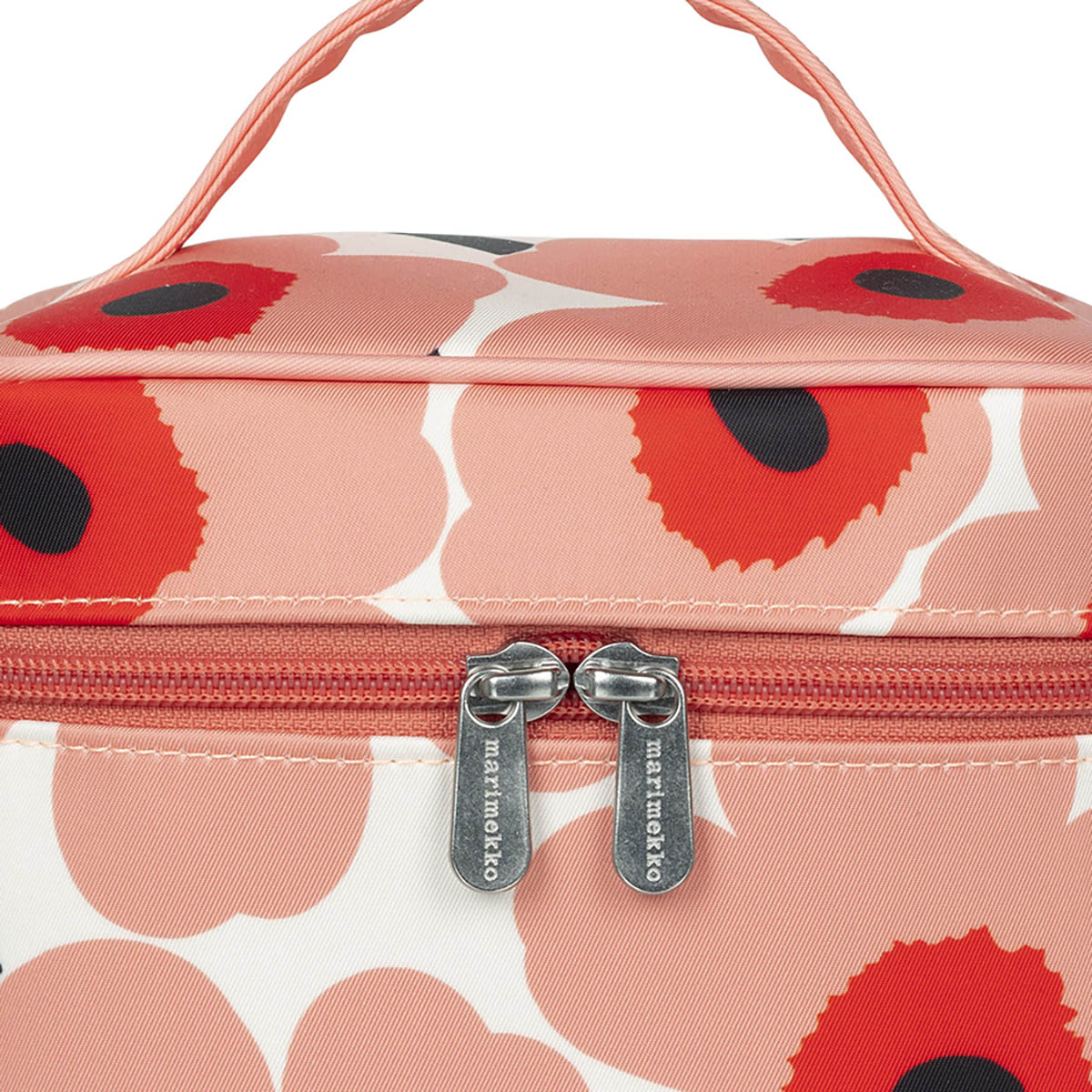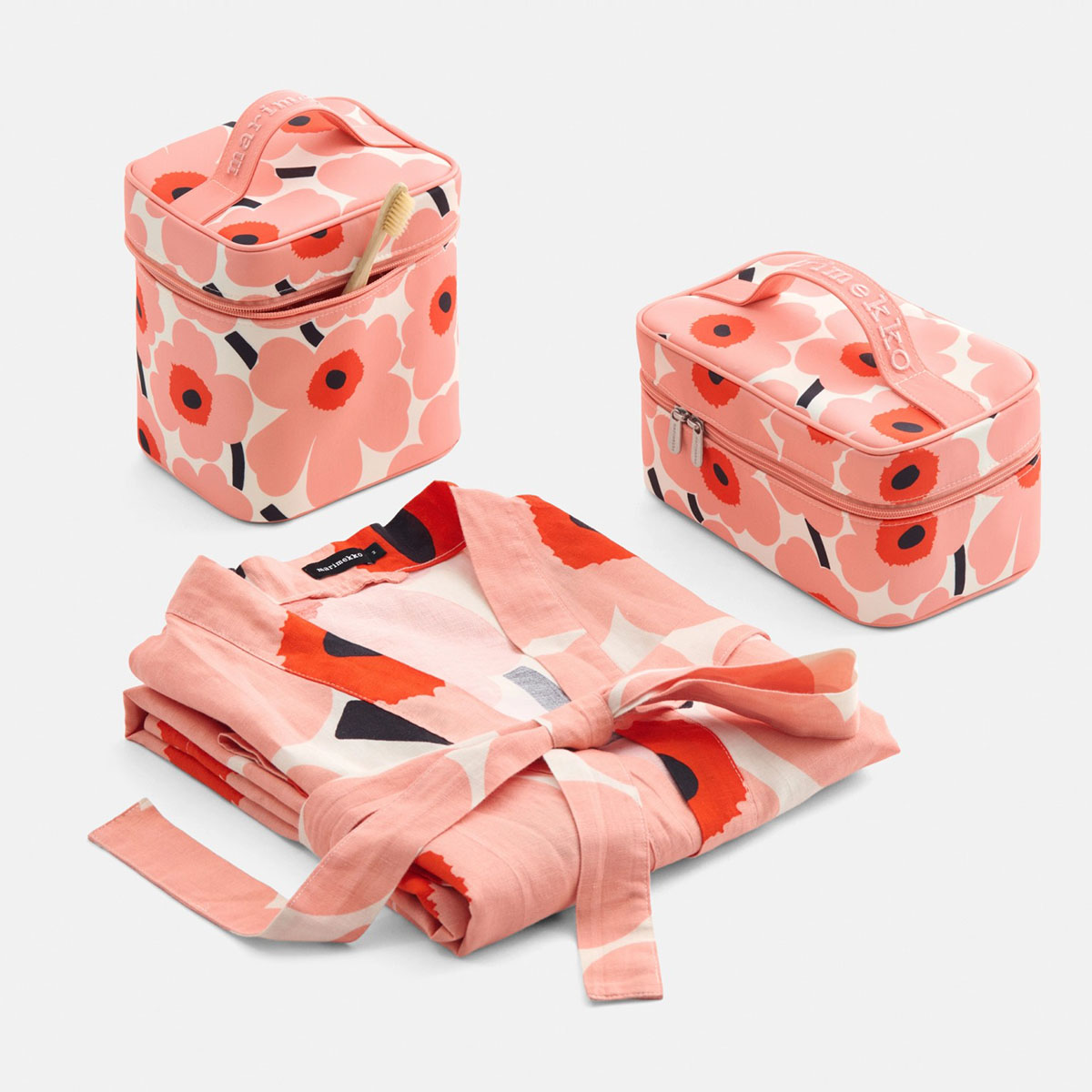 La trousse de toilette Tutu arbore le motif Mini Unikko. Elle est dotée d’une poignée sur le couvercle et d’une fermeture éclair. Son intérieur est doublé et des élastiques permettent de maintenir p.ex la brosse à dents en place. Cette trousse est fabriquée à 100 % en polyester recyclé.