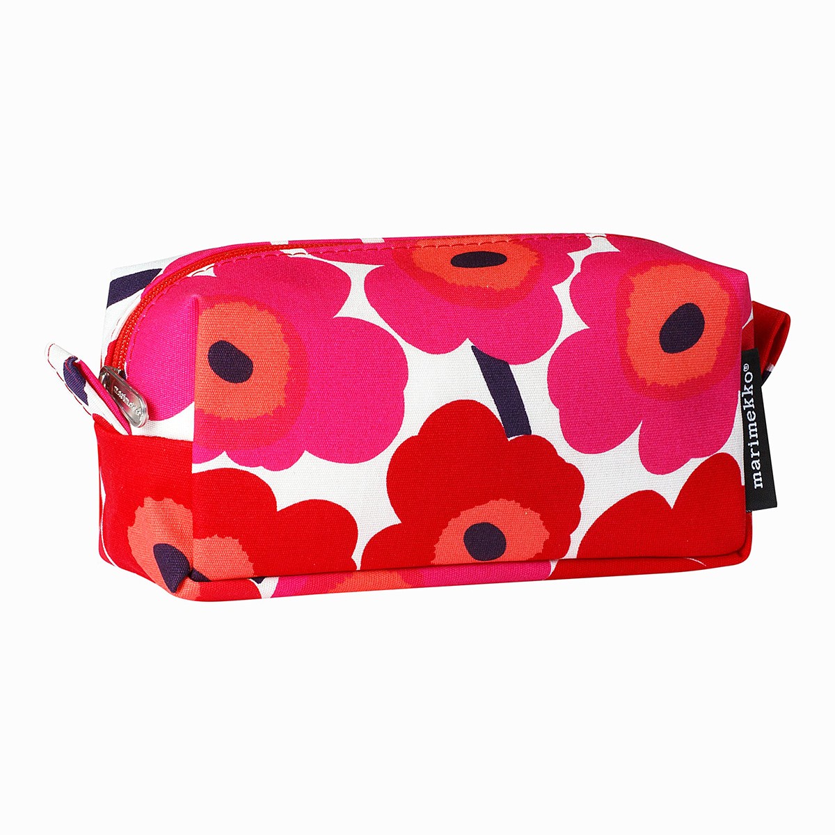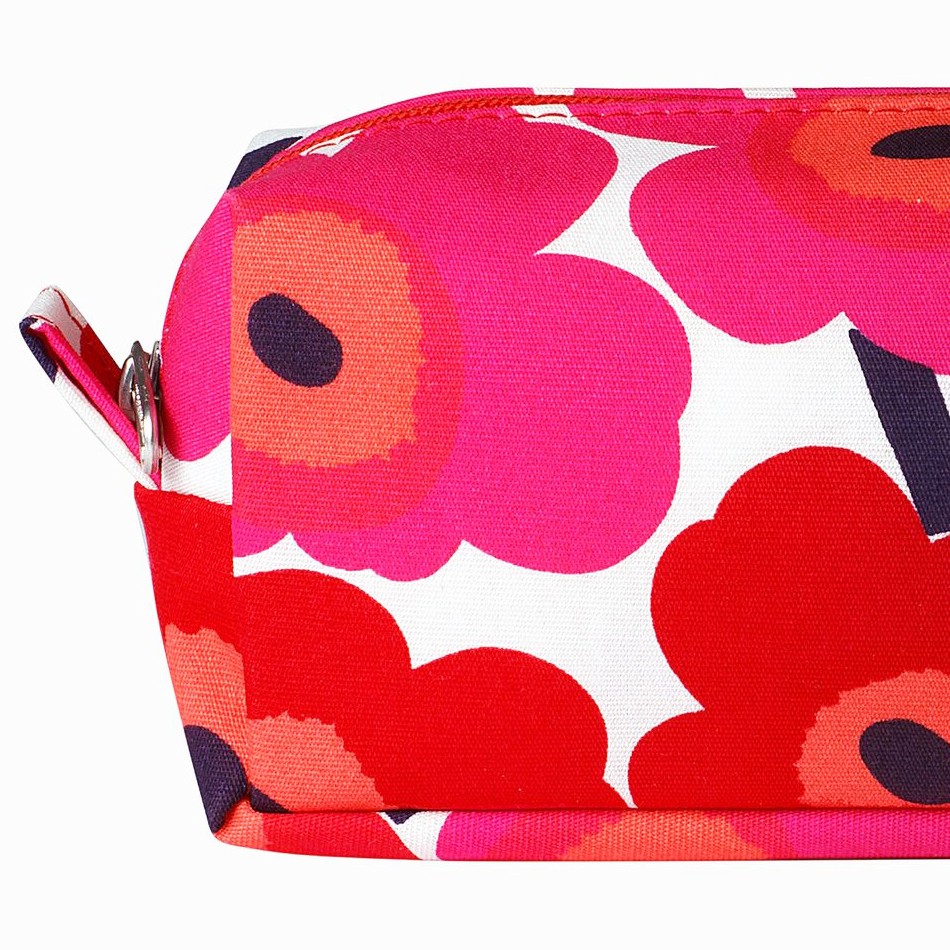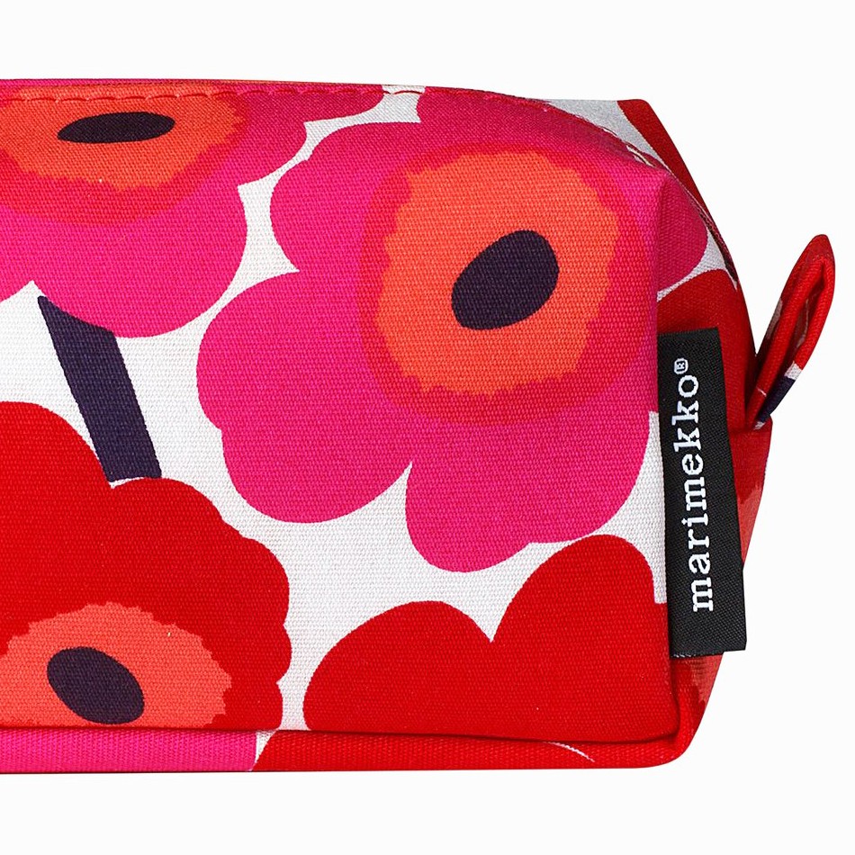 La trousse multi-usages Tiise Mini en toile de coton est décorée du motif Mini Unikko (coquelicot), imprimé à Helsinki. Cette pochette a une fermeture à glissière et une doublure en nylon, le tissu est anti-salissures. Il y a quatre poches à l’intérieur. La trousse Tiise Mini peut servir de trousse de toilette, trousse de maquillage, trousse à crayons…