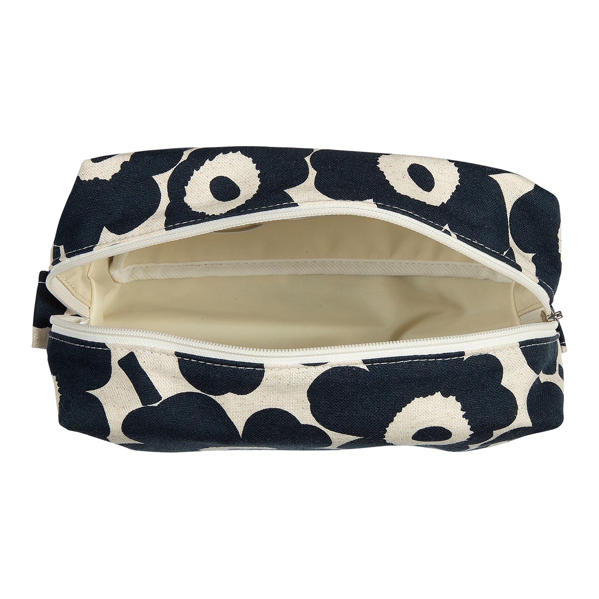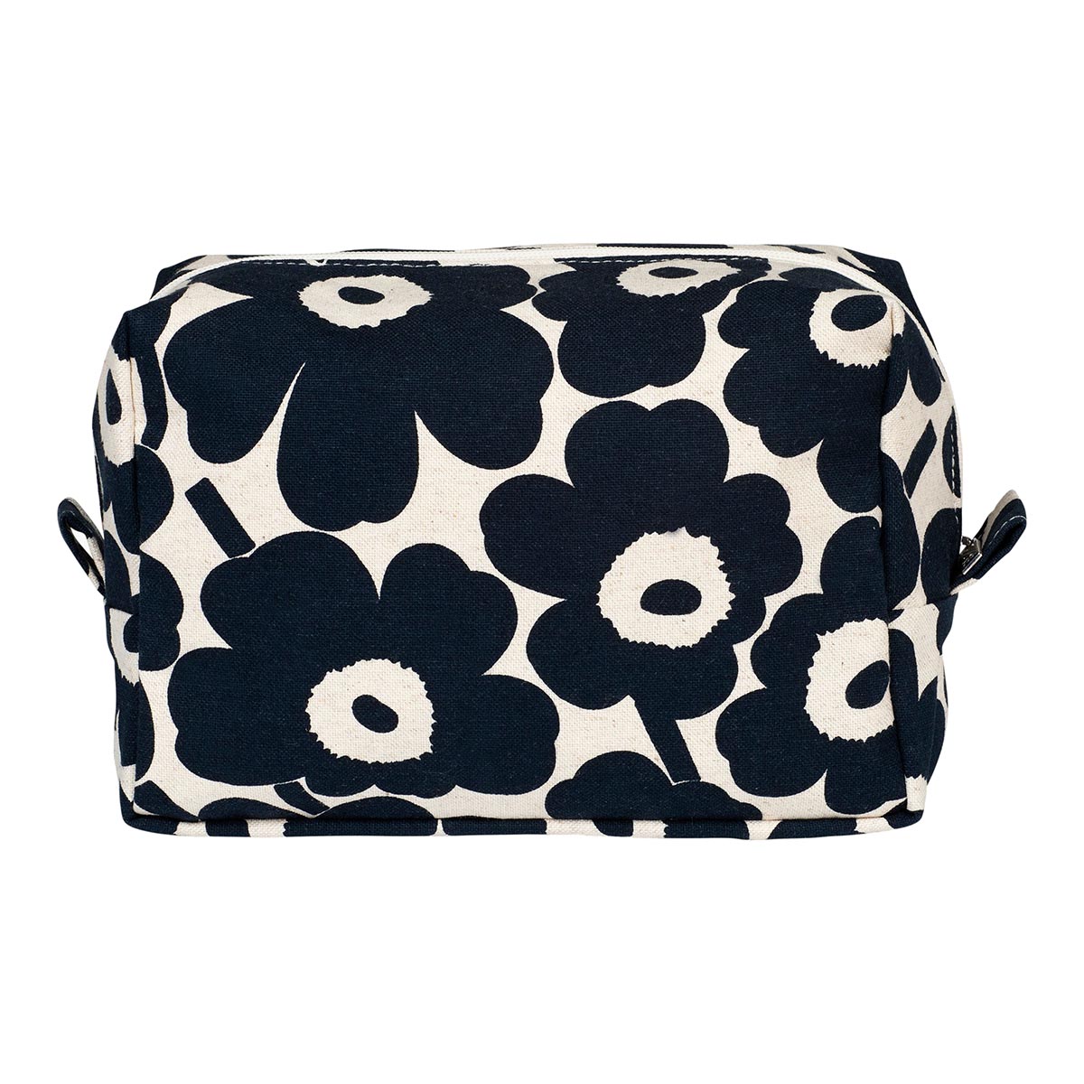 La trousse multi-usages Vilja Mini en toile de coton est décorée du motif Mini Unikko (coquelicot), imprimé à Helsinki. Cette pochette a une fermeture à glissière et une doublure en nylon, le tissu est anti-salissures. Il y a 2 poches à l’intérieur pour ranger ce que vous désirez. La trousse Vilja Mini peut servir de trousse de toilette, trousse de maquillage, trousse à crayons…