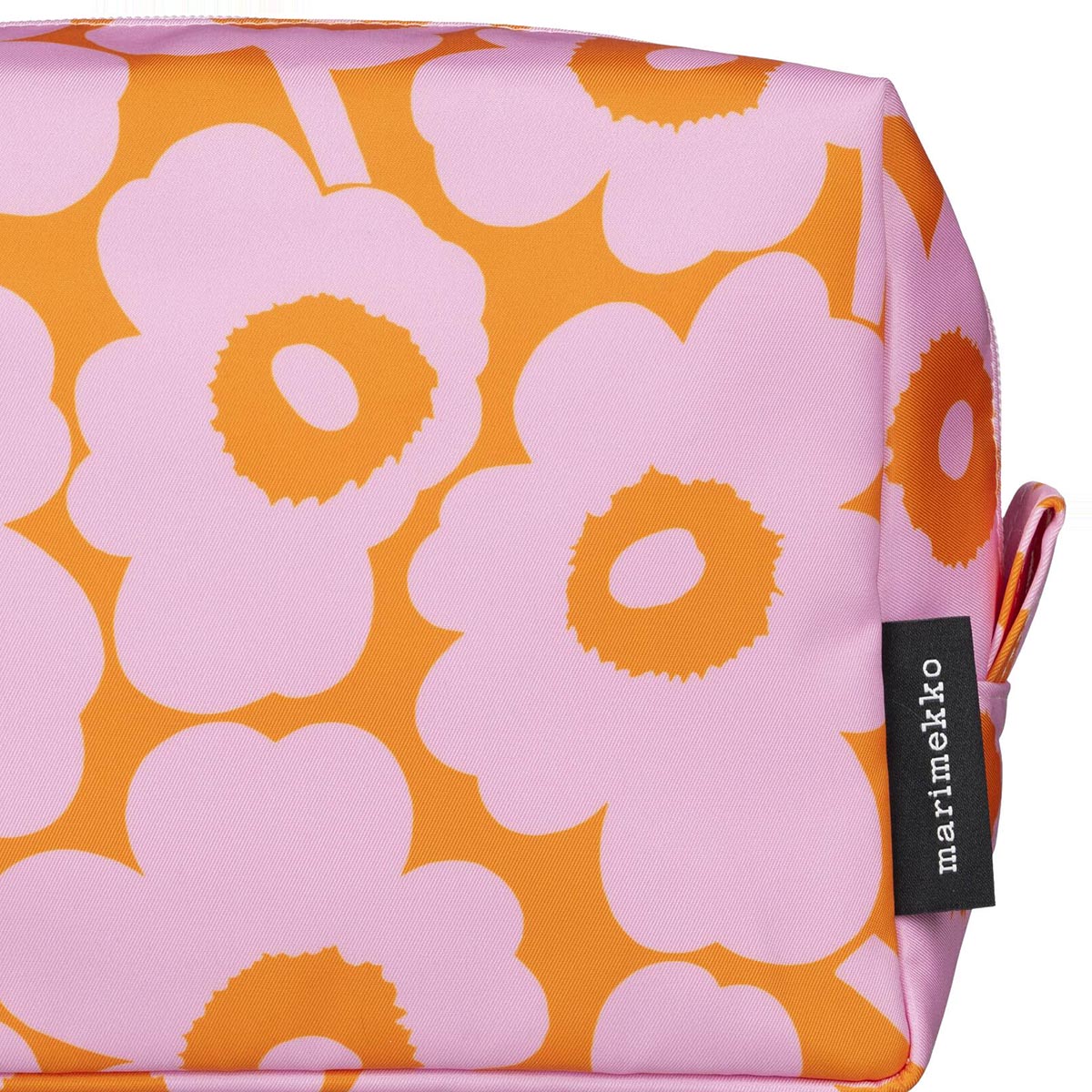 La trousse multi-usages Vilja Mini en toile de coton est décorée du motif Mini Unikko (coquelicot), imprimé à Helsinki. Cette pochette a une fermeture à glissière et une doublure en nylon, le tissu est anti-salissures. Il y a 2 poches à l’intérieur pour ranger ce que vous désirez. La trousse Vilja Mini peut servir de trousse de toilette, trousse de maquillage, trousse à crayons…