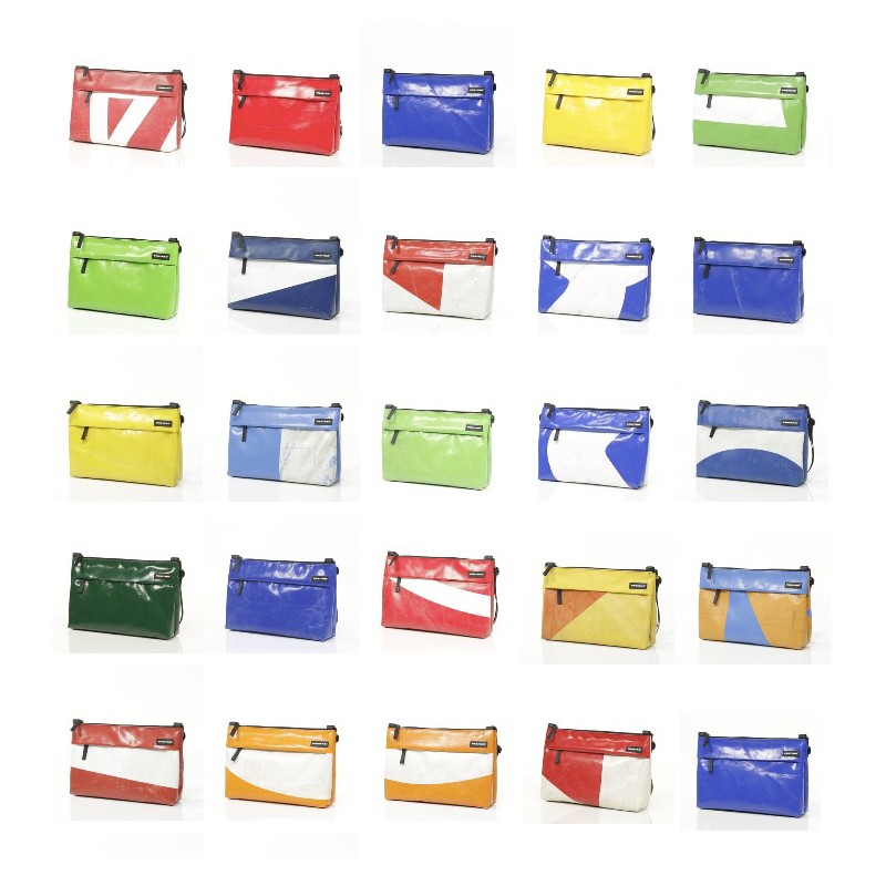 Chaque bâche a son histoire, son propre look et son propre état. De plus, chaque sac est coupé à la main à Zurich, et reçoit son propre look selon la couleur, l’écriture et le dessin de la bâche.