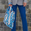 Kirsten Nangala Egan est née en 1989 à Yuendumu, une communauté aborigène isolée à 290 km au nord-ouest d’Alice Springs dans le Territoire du Nord de l’Australie et a grandi dans la brousse à Wayililinypa. Les Rêves se rapportent à sa terre, à ses caractéristiques et aux plantes et animaux qui l’habitent sur le sac fourre-tout recyclé.