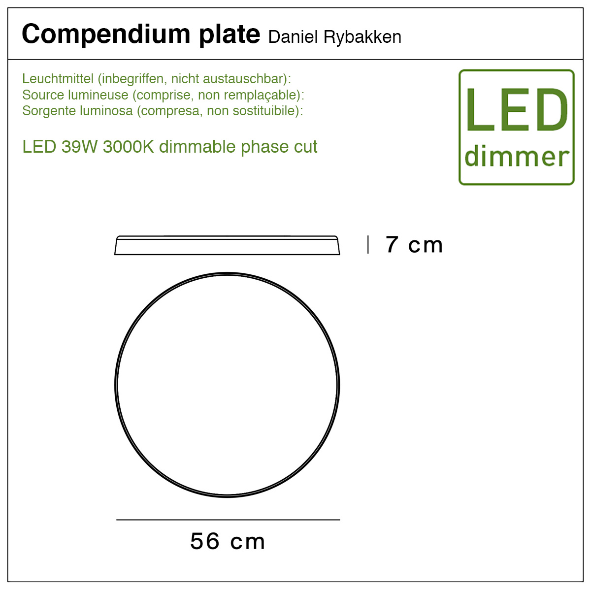 • Source lumineuse : LED 39W 3000K (comprise, non échangeable) dimmable depuis un interrupteur mural (dimmable phase cut)