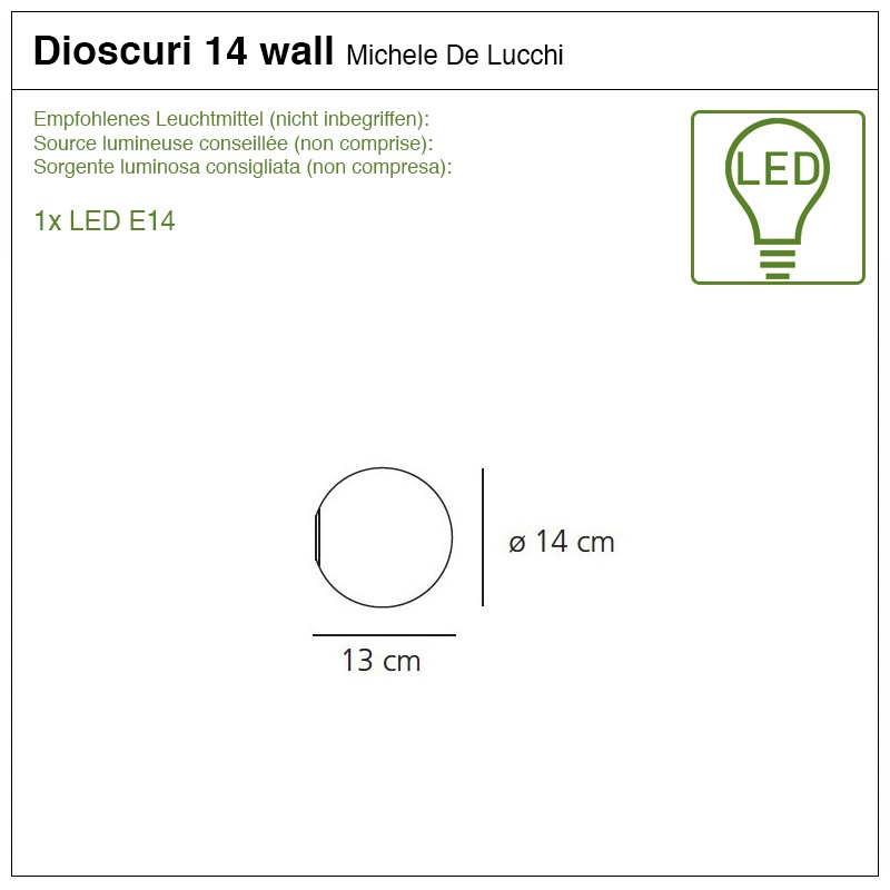 • Dimensions : diamètre 14cm, hauteur 13.6cm• Source lumineuse: LED E14 (non comprise)