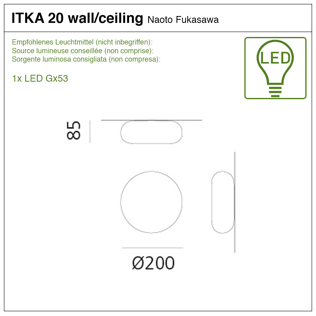 Le diffuseur plat en verre blanc soufflé a une forme harmonieuse et génère une lumière homogène et sans zones d’ombre sur la surface. Grâce à sa conception simple, ITKA convient à tout type d’intérieur.