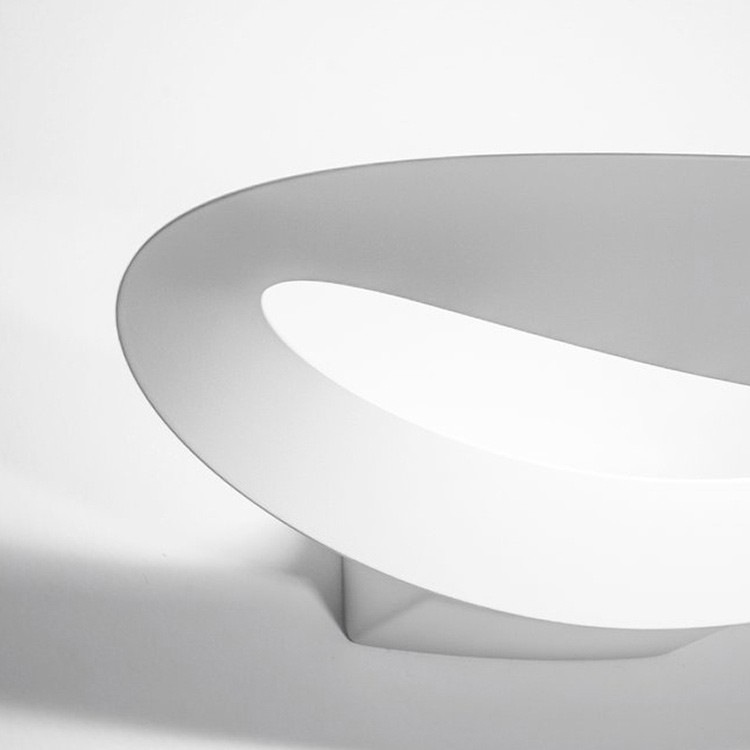 La ligne plastique et sinueuse du corps de la lampe Mesmeri enveloppe et masque la source LED, en dégageant comme par magie un doux faisceau de lumière vers le haut.