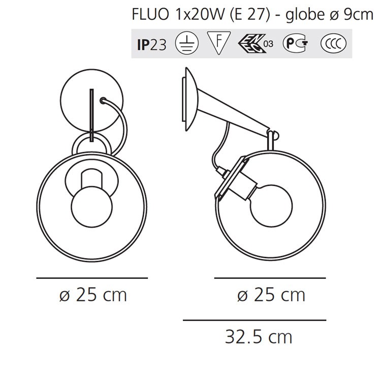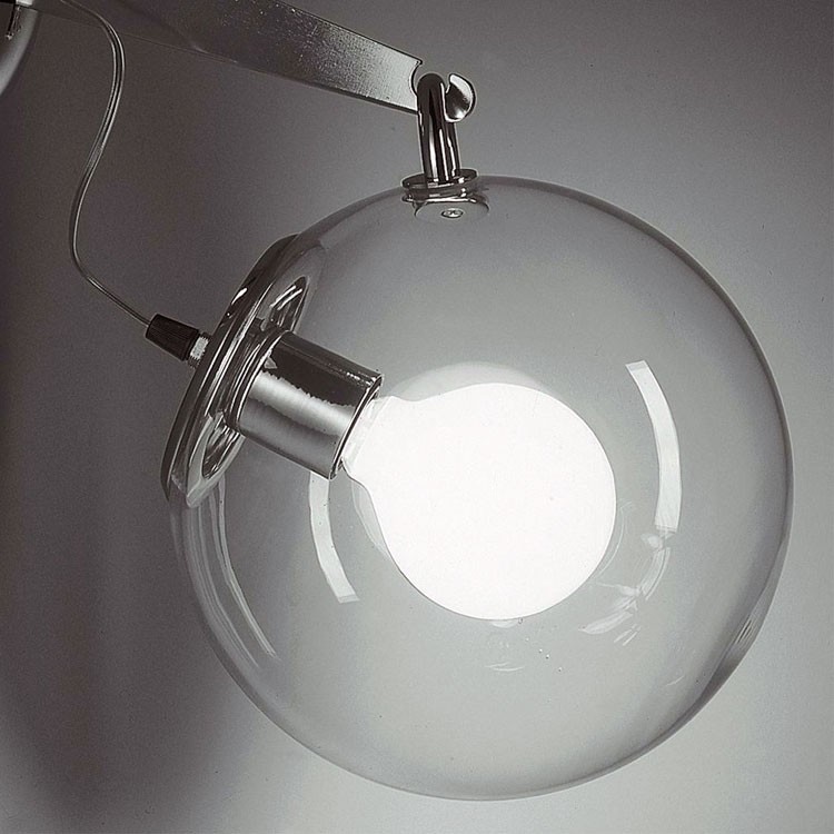 Miconos parete applique de Artemide.Structure en métal chromé brillant. Diffuseur en verre soufflé transparent. Emission lumineuse diffuse.