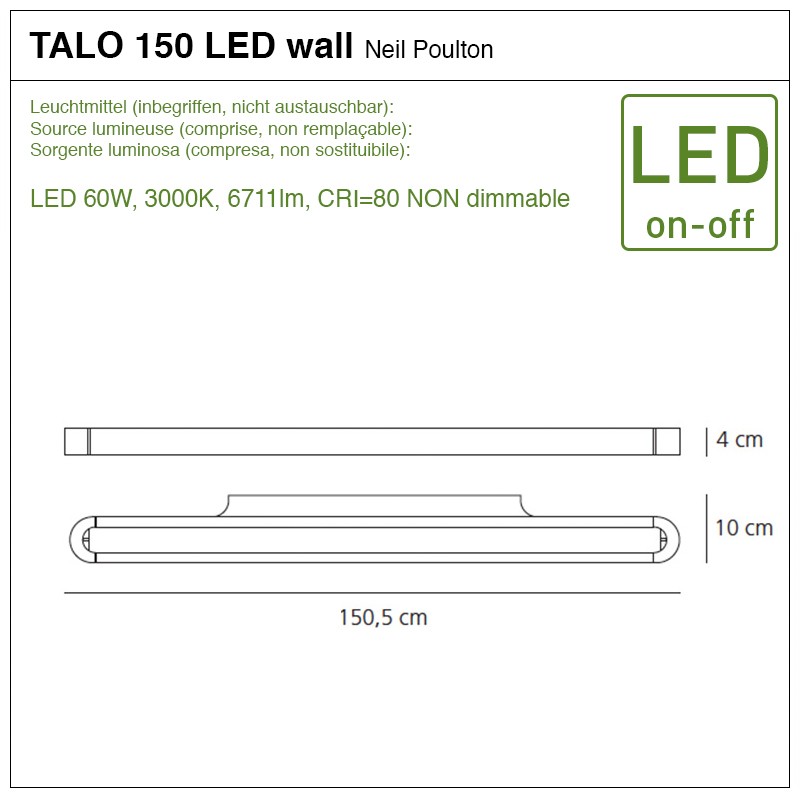 • Source lumineuse : LED 60W, 3000K, 6711lm, CRI=80 NON dimmable (comprise)