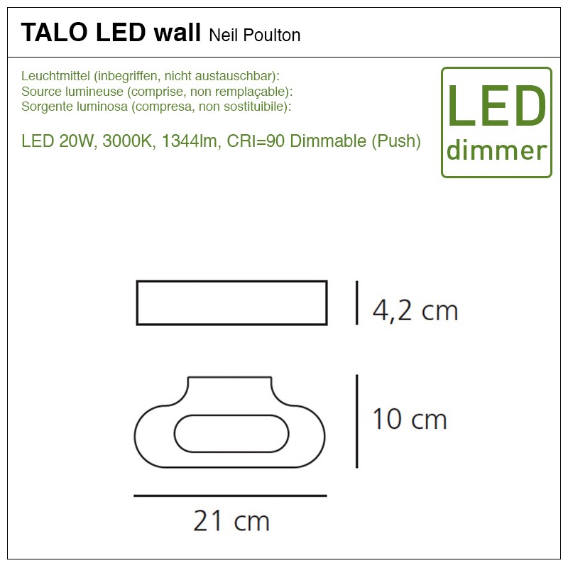 • Source lumineuse : LED 20W, 3000K, 1344lm, CRI=90 Dimmable (Push) (comprise)
