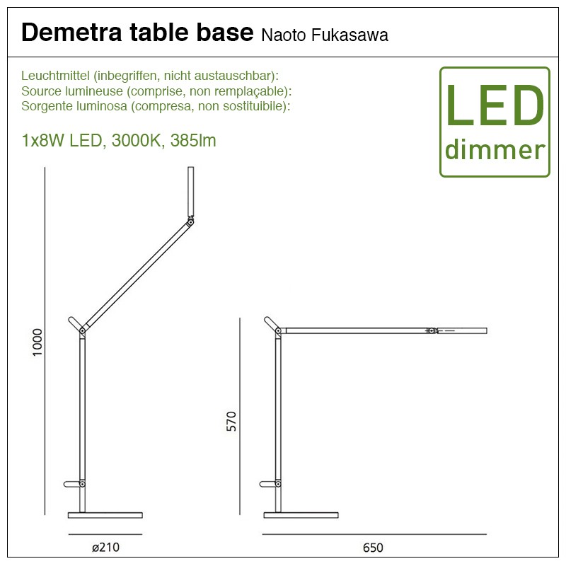 Demetra est une lampe avec tête et bras orientables. Le réflecteur est équipé d’un variateur sensitif qui permet de régler l’intensité de lumière selon les besoins.