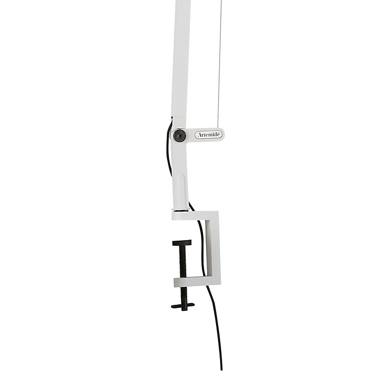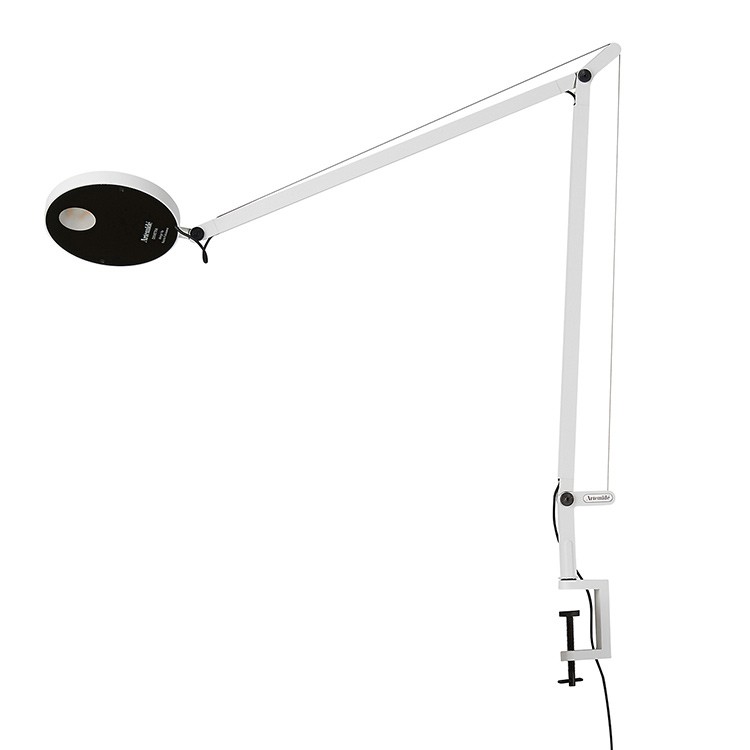 Demetra tavolo LED blanc – lampe avec étau de Artemide dessinée par Naoto Fukasawa.
