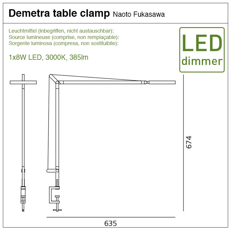 Demetra est une lampe avec tête et bras orientables. Le réflecteur est équipé d’un variateur sensitif qui permet de régler l’intensité de lumière selon les besoins.