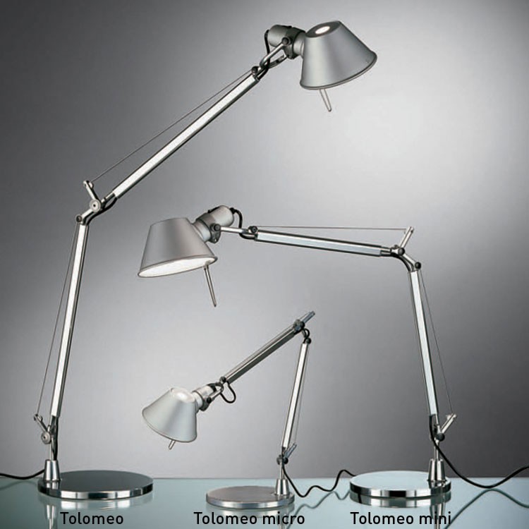 La lampe de table Tolomeo, lancée en 1987, est un classique du design de la marque Artemide. La série de luminaires Tolomeo avec le système d’équilibrage à ressorts a des bras réglables et est très flexible dans l’utilisation.