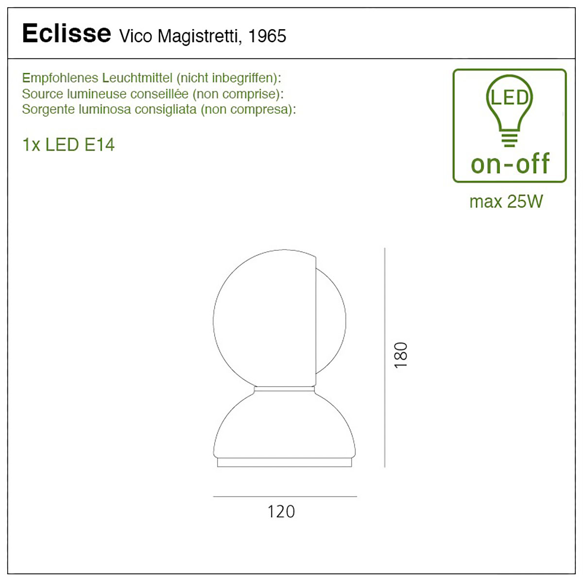 Eclisse, conçue par Vico Magistretti en 1965, a remporté le Compasso d’Oro Award en 1967 et est devenue un ambassadeur du design italien dans le monde entier.