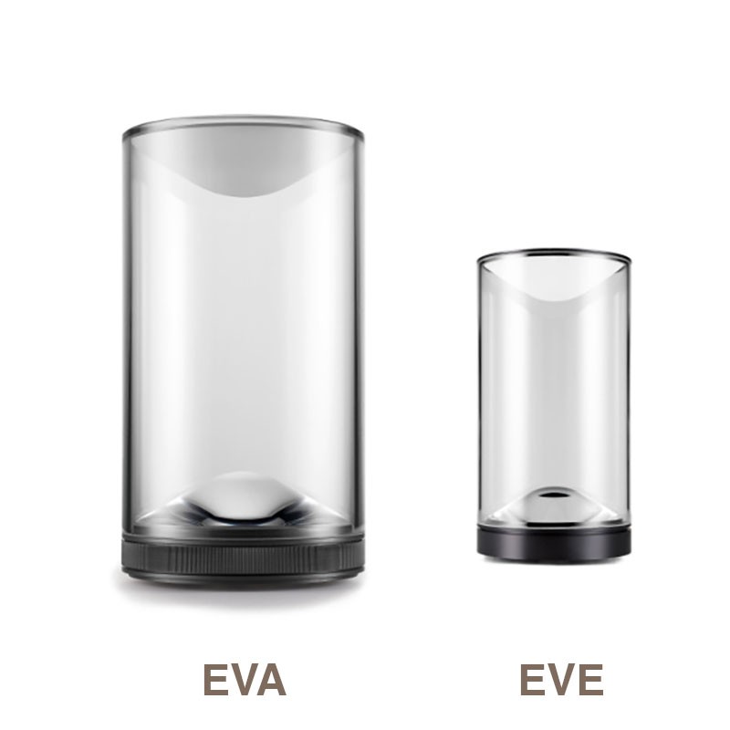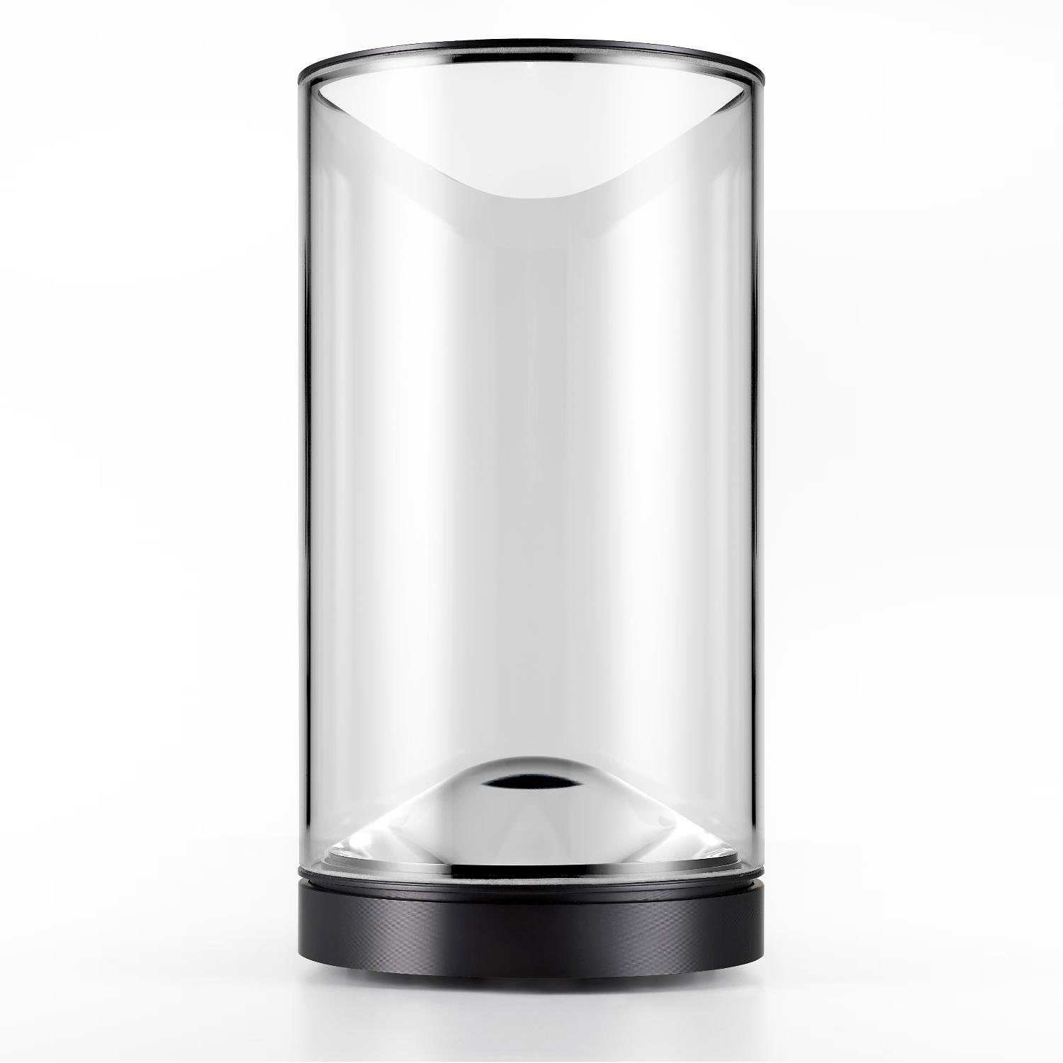EVE est une lampe de table composée d’un cylindre en verre transparent posé sur une base circulaire en aluminium qui abrite la source LED.