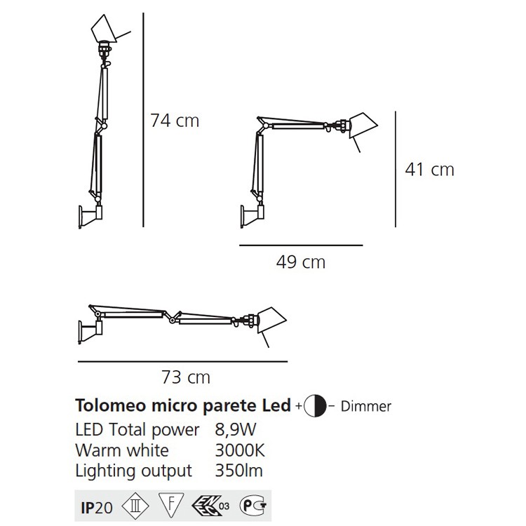 Applique Tolomeo micro parete LED avec les avantages de la technologie LED en termes économiques et écologiques qui se résument dans une très forte réduction de la consommation d’énergie, dans la longue durée et dans la performance d’éclairage.