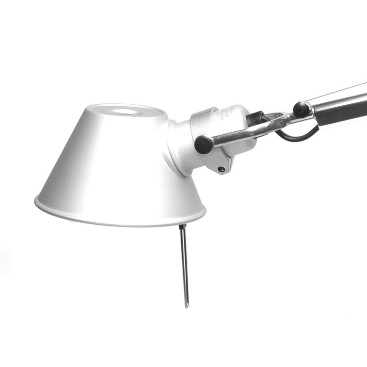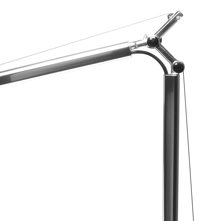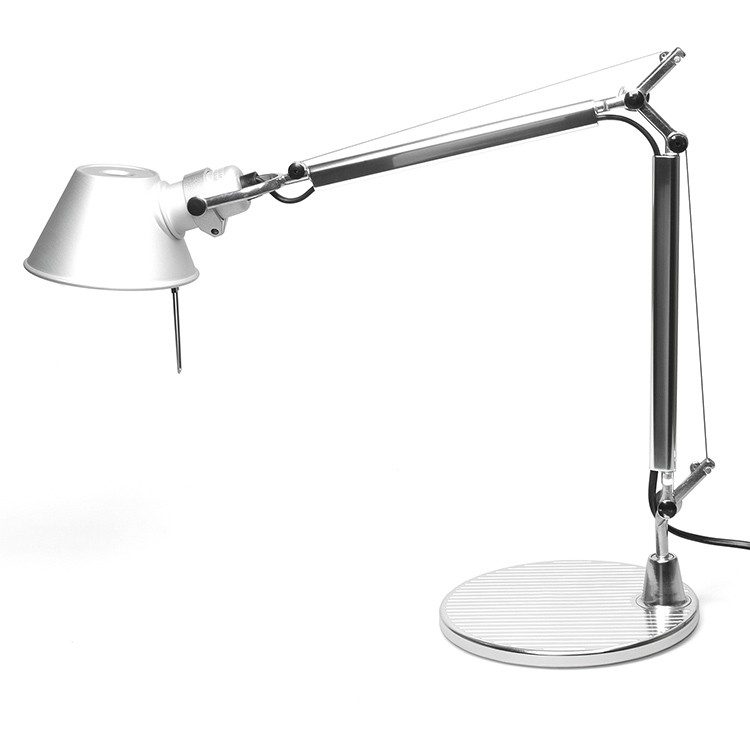 Tolomeo micro table a des bras articules avec système d’équilibrage à ressorts. La tête de la lampe est orientable dans toutes les directions.