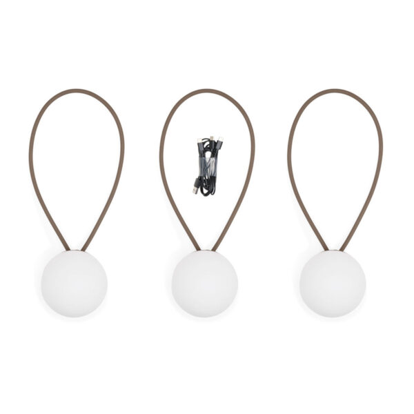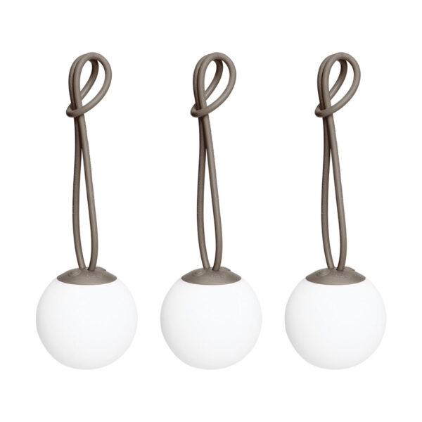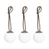 Set de trois lampes suspendues sans fil Bolleke mini taupe pour utilisation intérieure et extérieure.