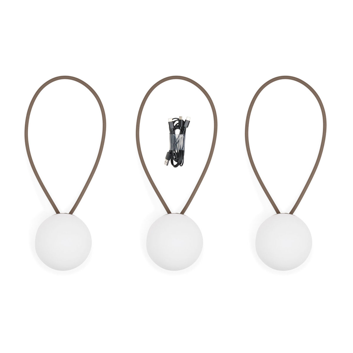 Le chargement est facile grâce aux câbles USB inclus. Inspiré des attaches de voiles, le design de Nathalie Schellekens allie style et fonctionnalité, faisant de ces lampes un ajout polyvalent et intemporel à votre maison ou espace extérieur.