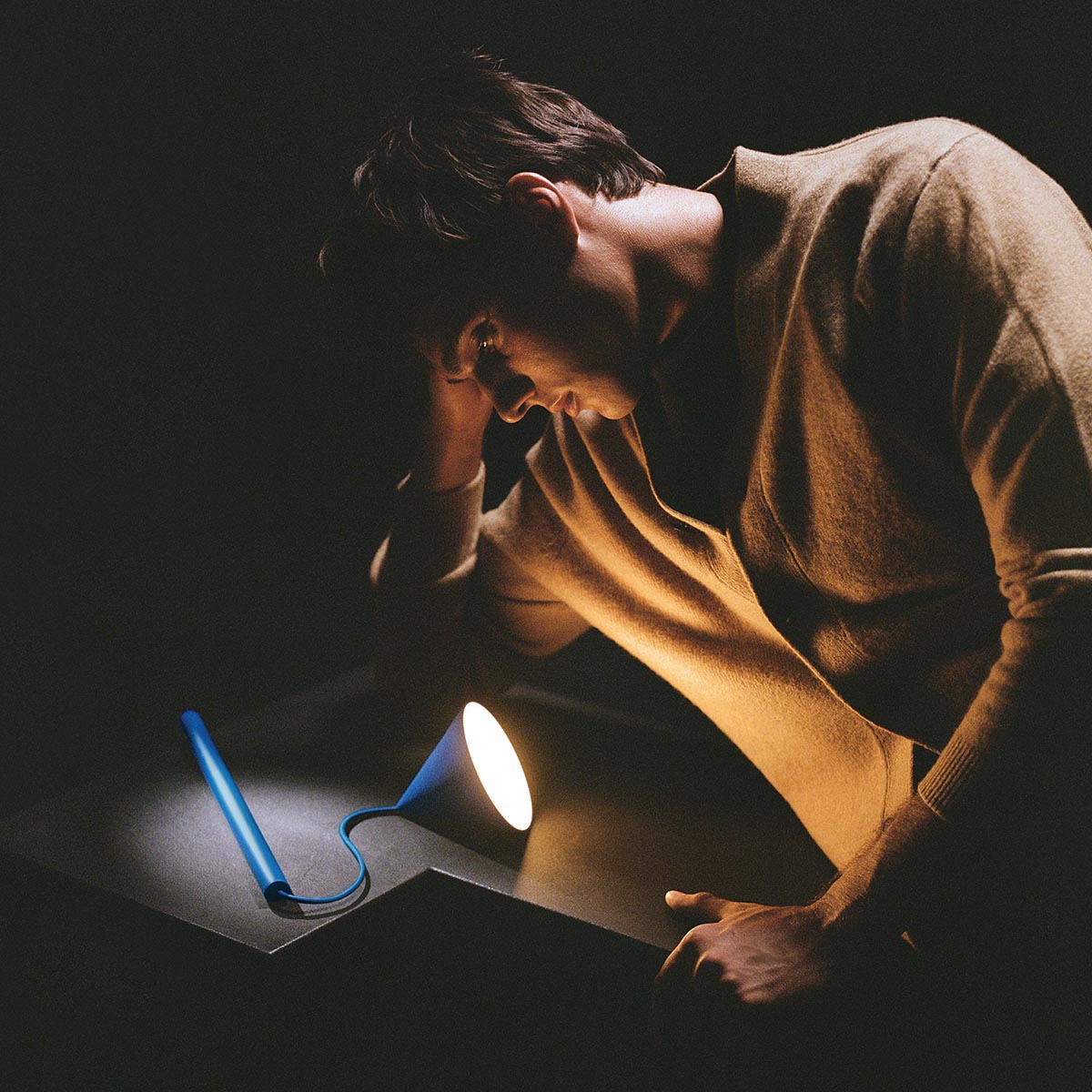 La batterie est intégrée dans le pied et offre une durée d’utilisation moyenne de 10 heures. La recharge s’effectue via le port USB-C intégré dans l’élément de base cylindrique. La source de lumière est une LED 2700K à intensité variable. Un seul interrupteur tactile sur le haut de la tête conique permet d’allumer et d’éteindre la lampe et d’en faire varier l’intensité. Grâce à la technologie Memory, la lampe se rallume avec le dernier réglage d’intensité lumineuse sélectionné.