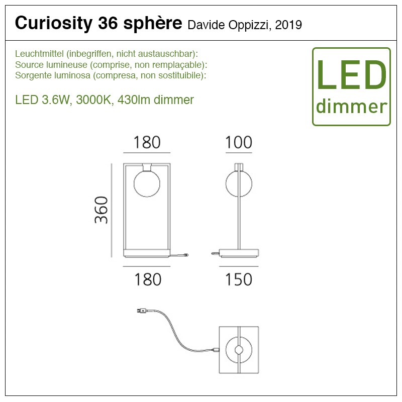 La lampe Curiosity est destinée aux secteurs privé et professionnel: pour les musées, les collections privées ou pour des objets sur la table du restaurant.