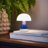 Lampe LED étanche avec lumière blanche froide et chaude (max. 40 lux), 9 couleurs, variateur et 24h d’autonomie. Large palette de couleurs : Mina M apporte une palette impressionnante de 9 couleurs de lumière LED sur votre table de nuit, votre lieu de travail ou votre terrasse. Le changement de couleur et la fonction de variation sont tous contrôlés par une fonction de pression sur le dessus de la lampe. Le boîtier est étanche selon la norme IPX4, ce qui signifie que vous pouvez laisser votre Mina M dehors sous la pluie. Chargement sans fil : Mina M peut être rechargée avec n’importe quelle station de chargement sans fil compatible Qi. Vous pouvez également recharger Mina M avec un câble de chargement USB-C livré avec la lampe. Mina M a une autonomie de 24 heures avec une seule charge, ce qui en fait le compagnon idéal de jour comme de nuit. • Dimensions: 125mm x 145mm x 97mm • Poids: 256g