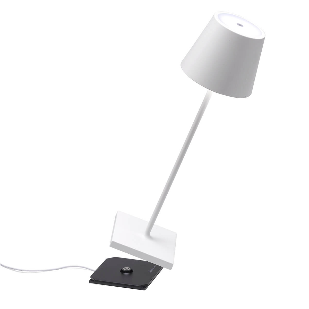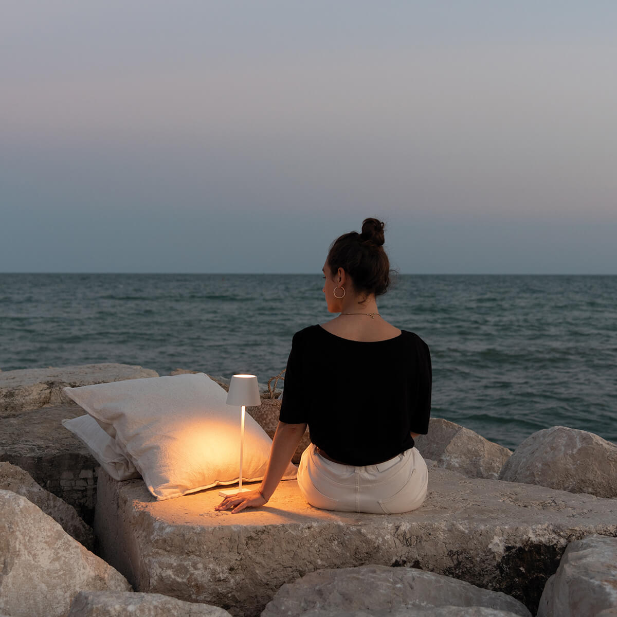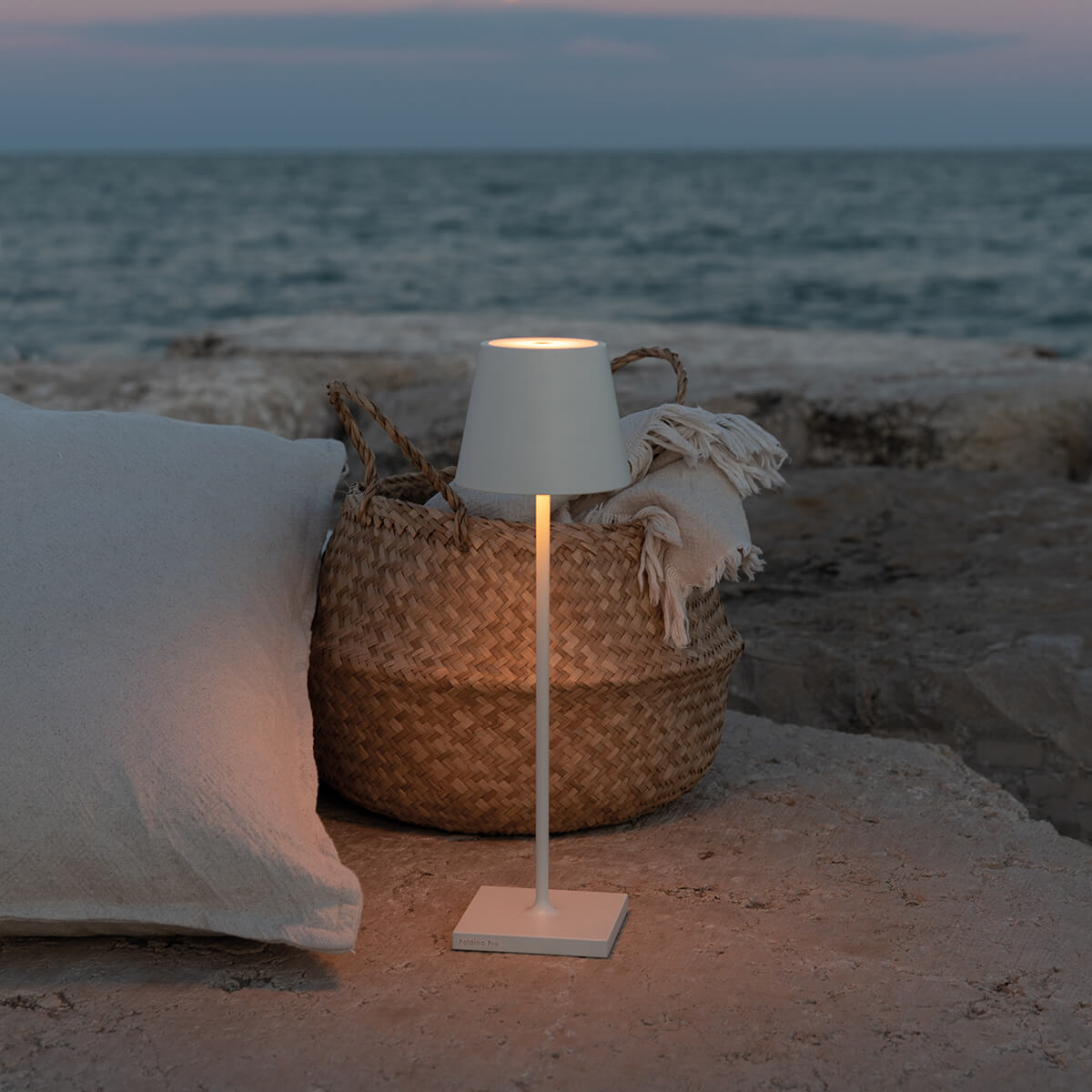 Poldina convient à une utilisation intérieure et extérieure. Un contrôle électronique surveille l’autonomie restante et assure un flux de lumière constant jusqu’à épuisement de la batterie. La charge est ainsi optimisée et toujours effectuée correctement.