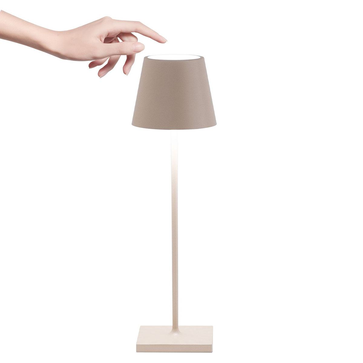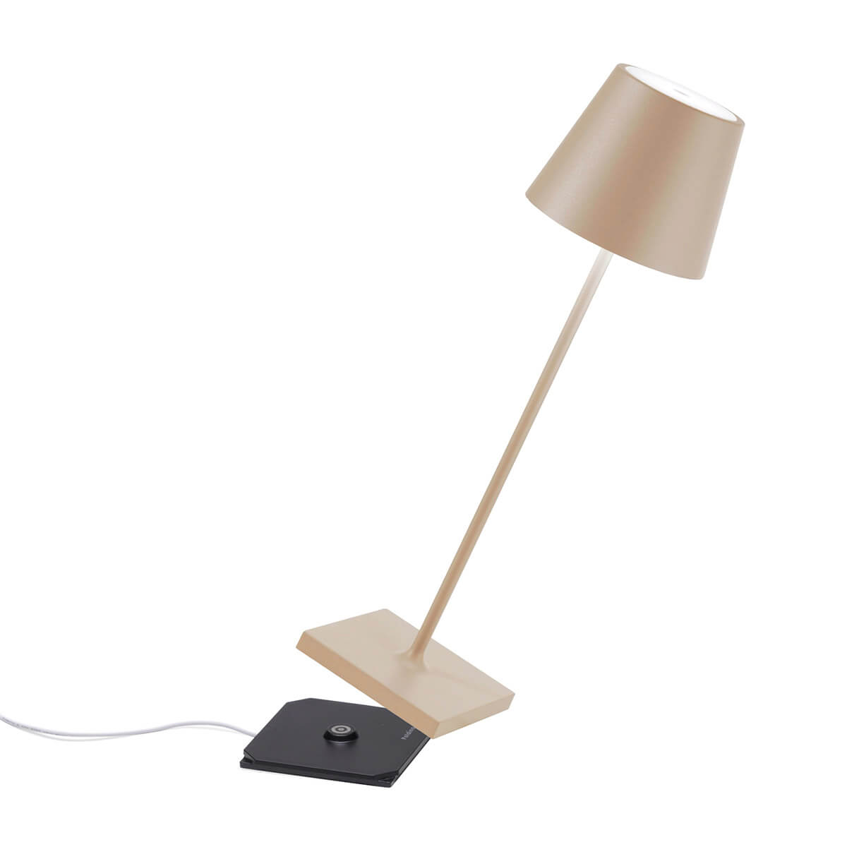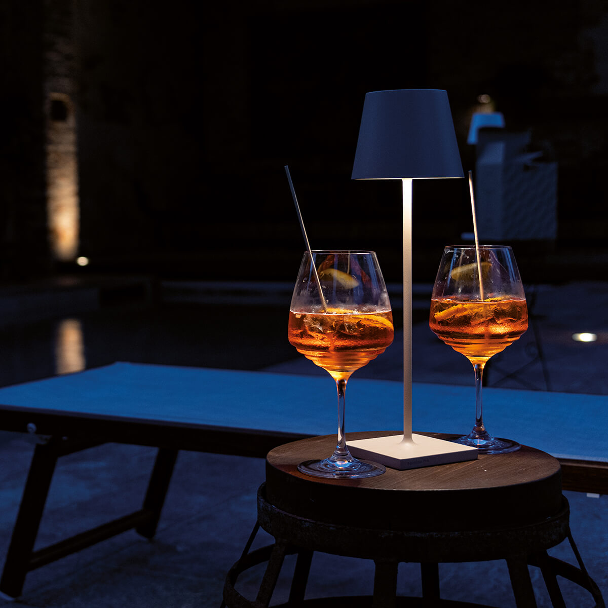 Poldina convient à une utilisation intérieure et extérieure. Un contrôle électronique surveille l’autonomie restante et assure un flux de lumière constant jusqu’à épuisement de la batterie. La charge est ainsi optimisée et toujours effectuée correctement.