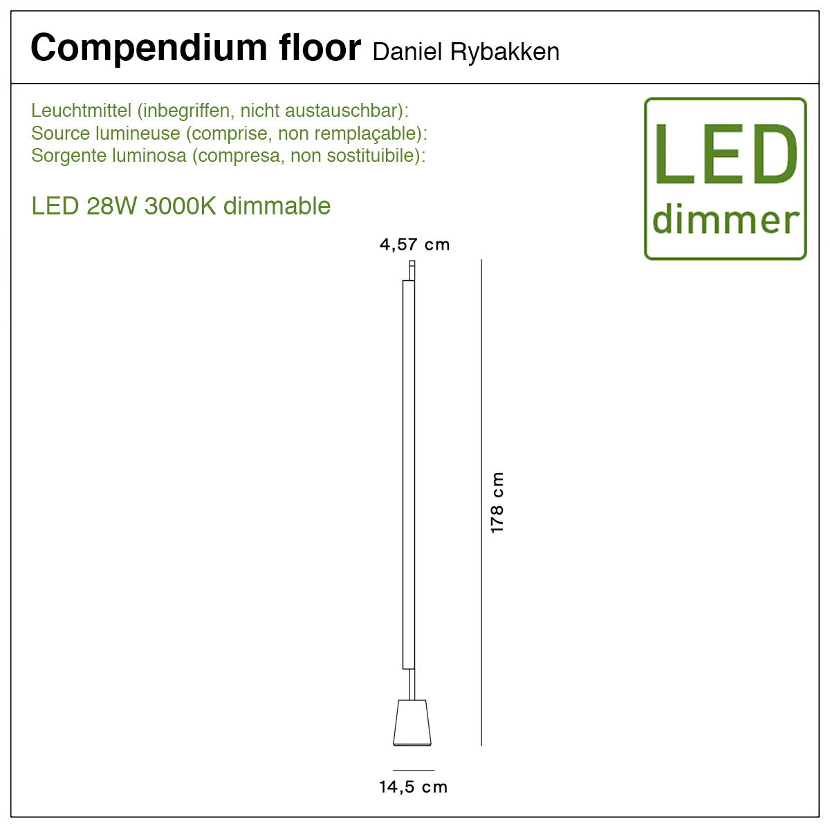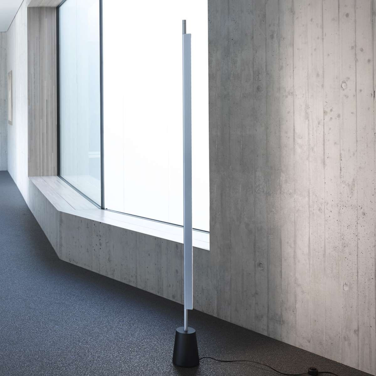 Le corps du lampadaire Compendium terra abrite une source LED à haute efficacité et il tourne librement sur la base pour diriger la lumière vers le mur en évitant l’éblouissement direct.