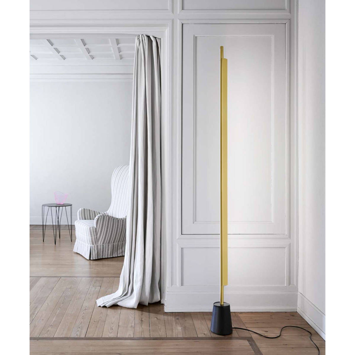 Le corps du lampadaire Compendium terra abrite une source LED à haute efficacité et il tourne librement sur la base pour diriger la lumière vers le mur en évitant l’éblouissement direct.