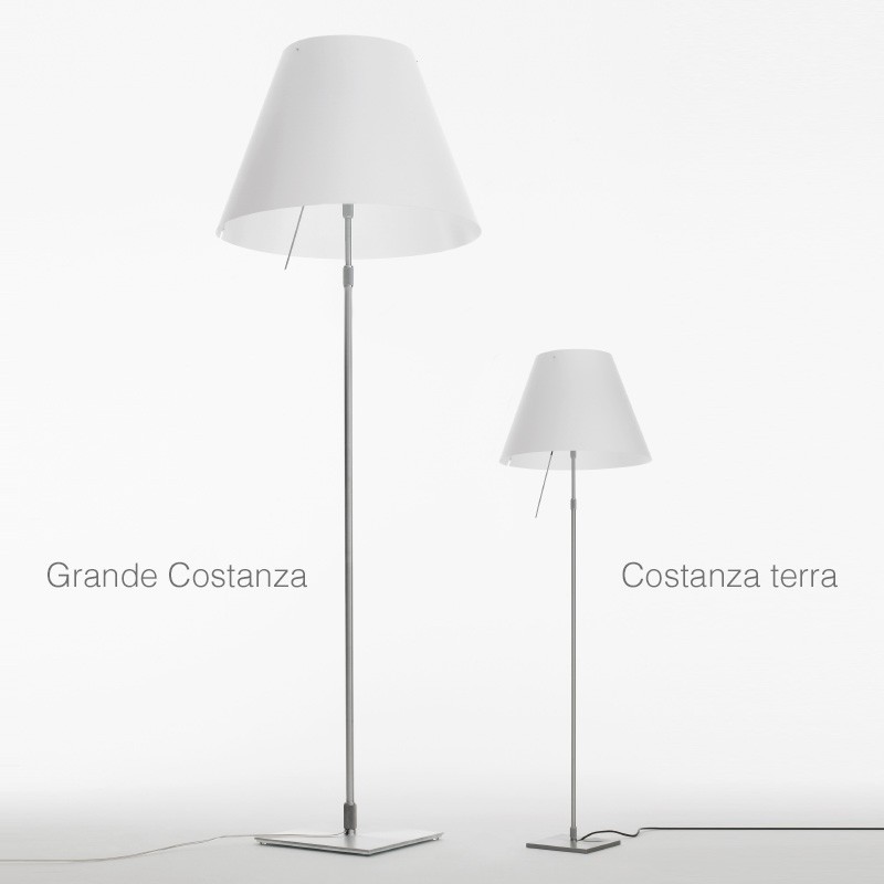 Alliant tradition et technologie, Paolo Rizzatto décline le classique sous la forme contemporaine. Légèreté de l’abat-jour – une feuille de polycarbonate – essentialité de la structure – aluminium brossé: Costanza est l’archétype de l’élégance moderne.