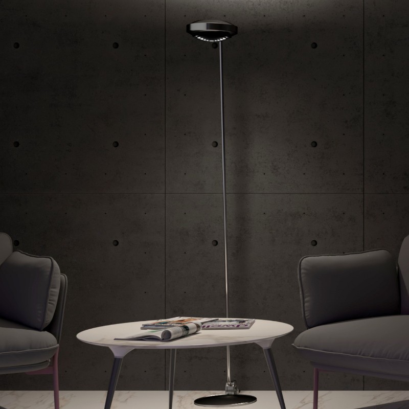 ELLE 1 LED est une lampe de sol minimaliste à forte présence. Elle peut être utilisée à la fois pour un éclairage direct et pour un éclairage diffus. Réflecteur ajustable et grille spéciale pour le contrôle de l’éblouissement. ELLE trouve sa place aussi bien dans le salon que dans le bureau.