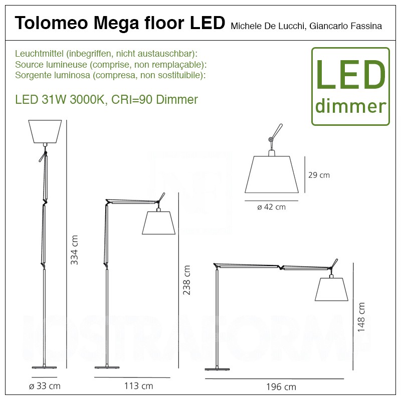 • Source lumineuse : LED 31W 3000K, CRI=90 Dimmer (comprise, non échangeable)