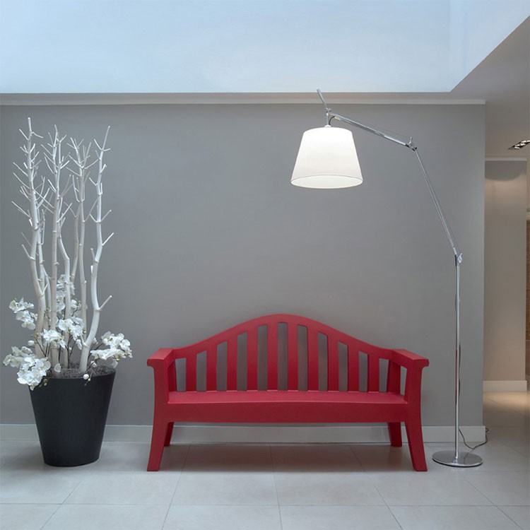 Tolomeo Mega terra constitue un instrument pour l’éclairage de situations de convivialité et de partage, avec un grand diffuseur élégant et raffiné qui intègre les flux de lumière directe et indirecte.