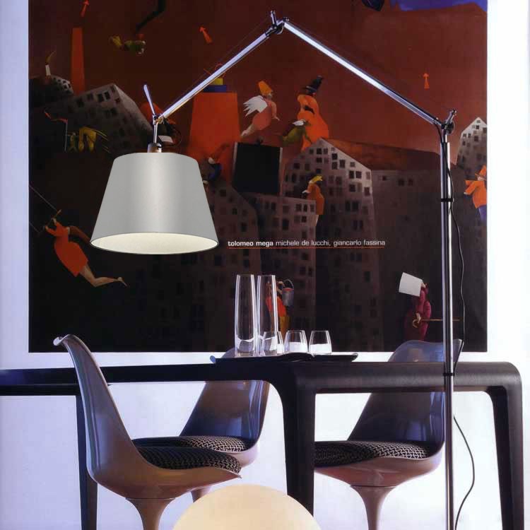 Tolomeo Mega terra constitue un instrument pour l’éclairage de situations de convivialité et de partage, avec un grand diffuseur élégant et raffiné qui intègre les flux de lumière directe et indirecte.