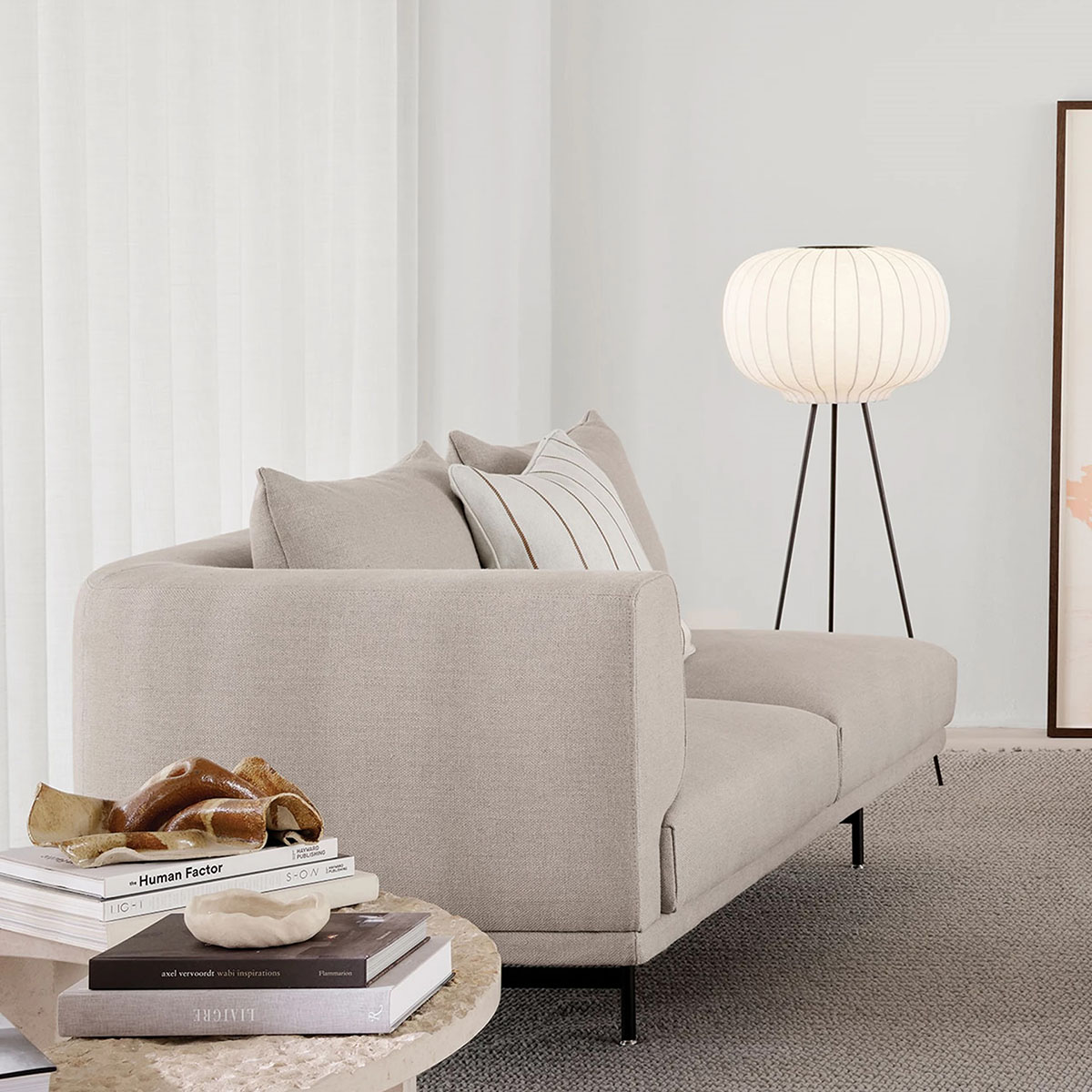 Le lampadaire Vipp Paper convient parfaitement au salon ou à la chambre à coucher. L’abat-jour est porté par un trépied fin composé de pieds coniques en aluminium thermolaqué. Un cordon d’alimentation passe à l’intérieur de l’un des pieds, pour une esthétique épurée et raffinée.