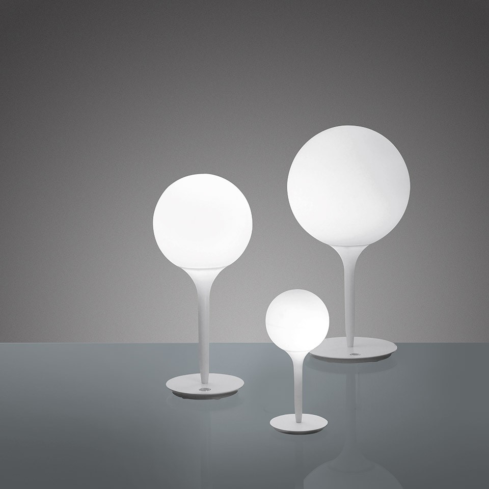 Le diffuseur sphérique se termine par une tige lumineuse de forme effilée constituant un doux passage de la lumière intense du diffuseur à la zone d’ombre de la structure de la lampe.