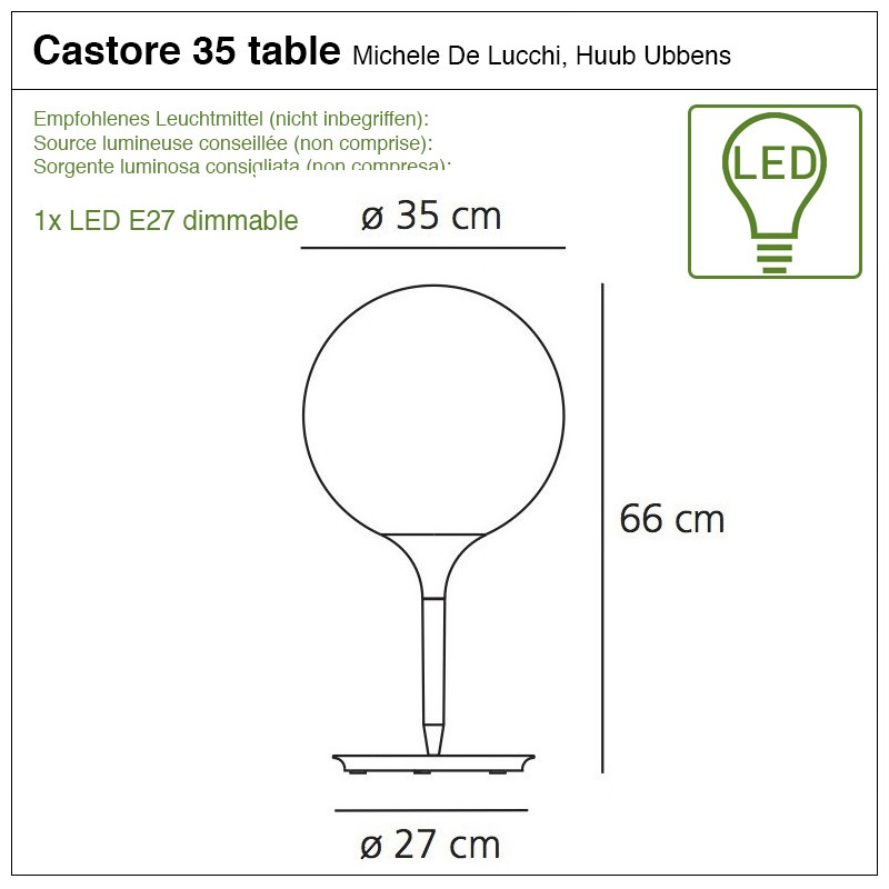 • Source lumineuse : 1x LED E27 dimmable (non comprise)