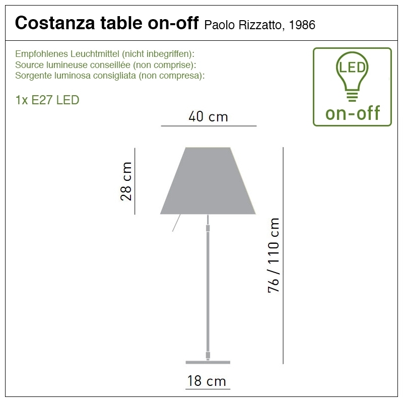 La série de luminaires dessinée par Paolo Rizzatto est élégante et intemporelle, elle s’insère très naturellement dans tous les environnements. Costanza est l’archétype de l’élégance moderne.