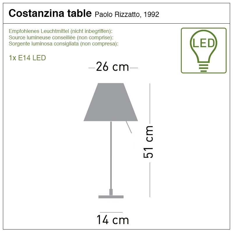 La série de luminaires dessinée par Paolo Rizzatto est élégante et intemporelle, elle s’insère très naturellement dans tous les environnements. Costanzina est l’archétype de l’élégance moderne. Le diffuseur en polycarbonate est soutenu par la structure en aluminium sur deux seuls points d’appui.