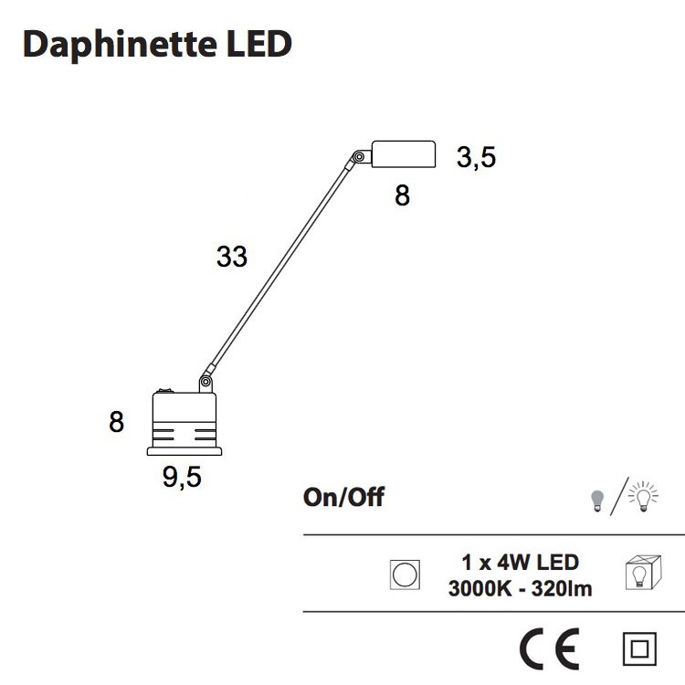 Source lumineuse: 1x 4W LED 3000K – 320lm – interrupteur On/Off