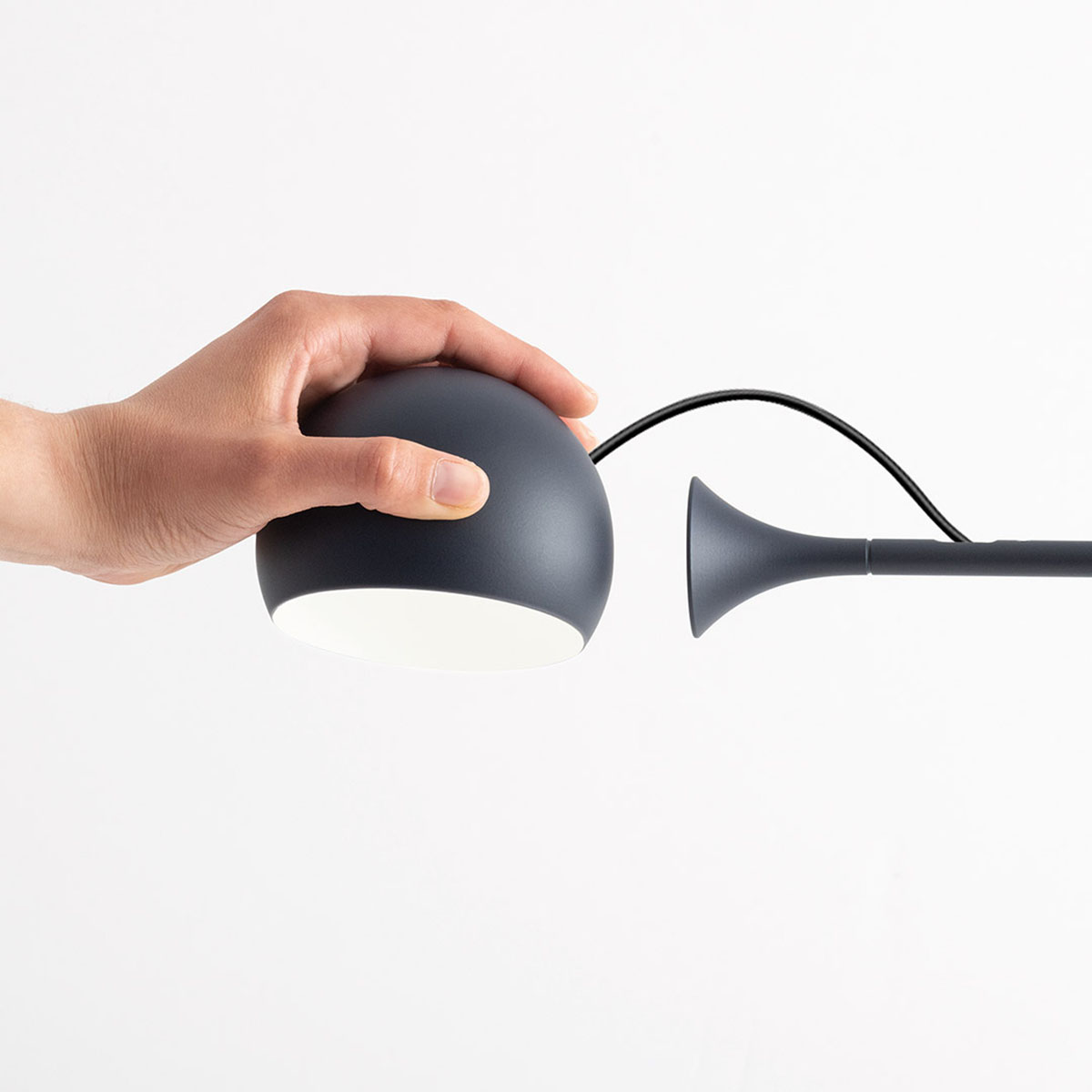 IXA a une tête sphérique fixée à la structure par un raccord aimanté qui lui permet de pivoter librement à 360°, afin de diriger facilement la lumière dans toutes les directions. Ixa apporte la lumière là où elle est nécessaire, nous invitant à interagir physiquement avec l’objet qui fait de nous les auteurs de notre espace lumineux.