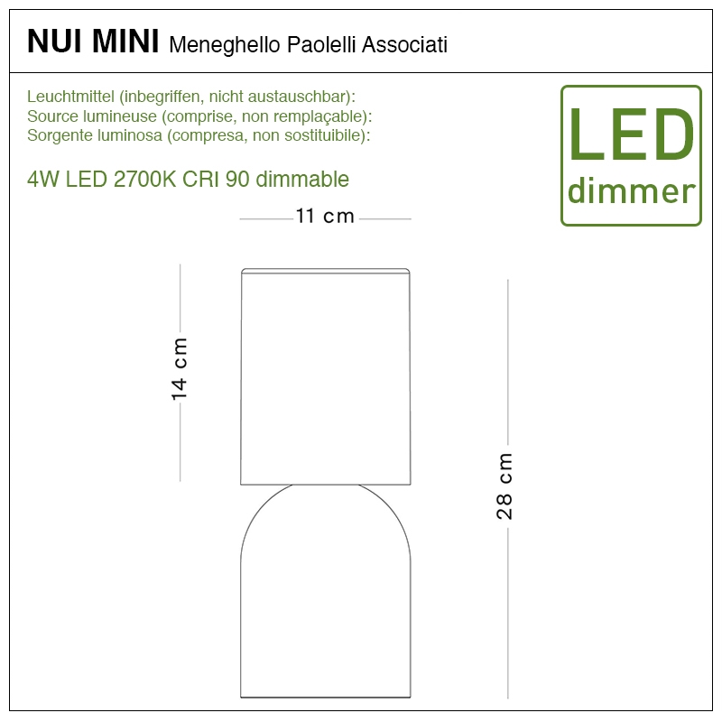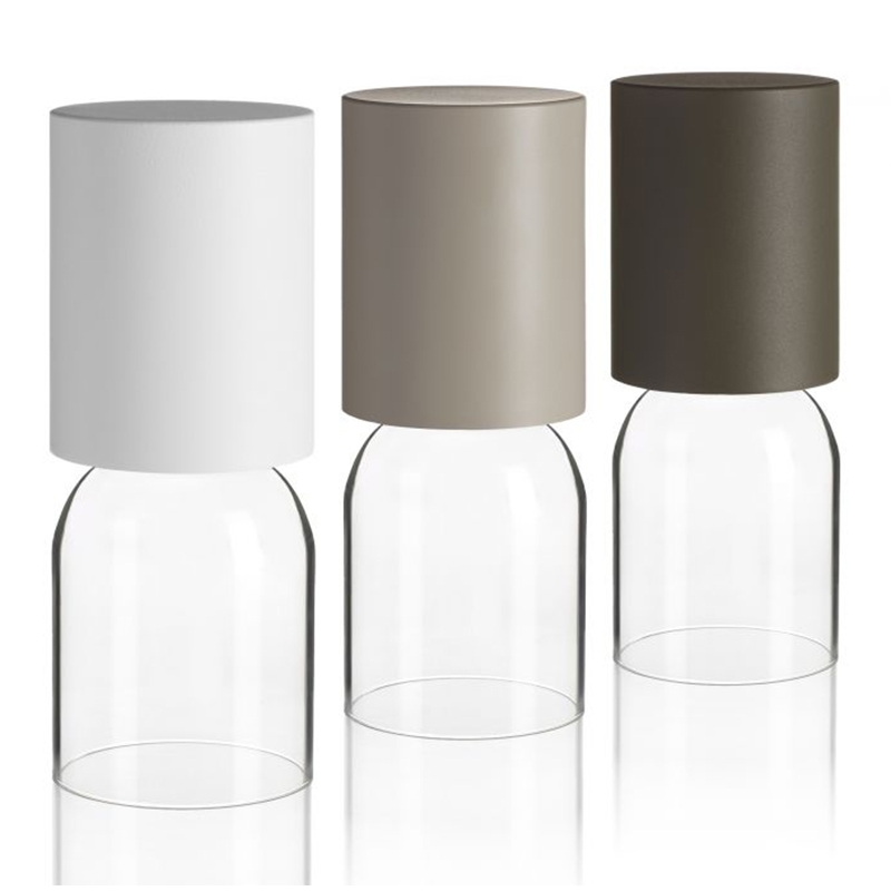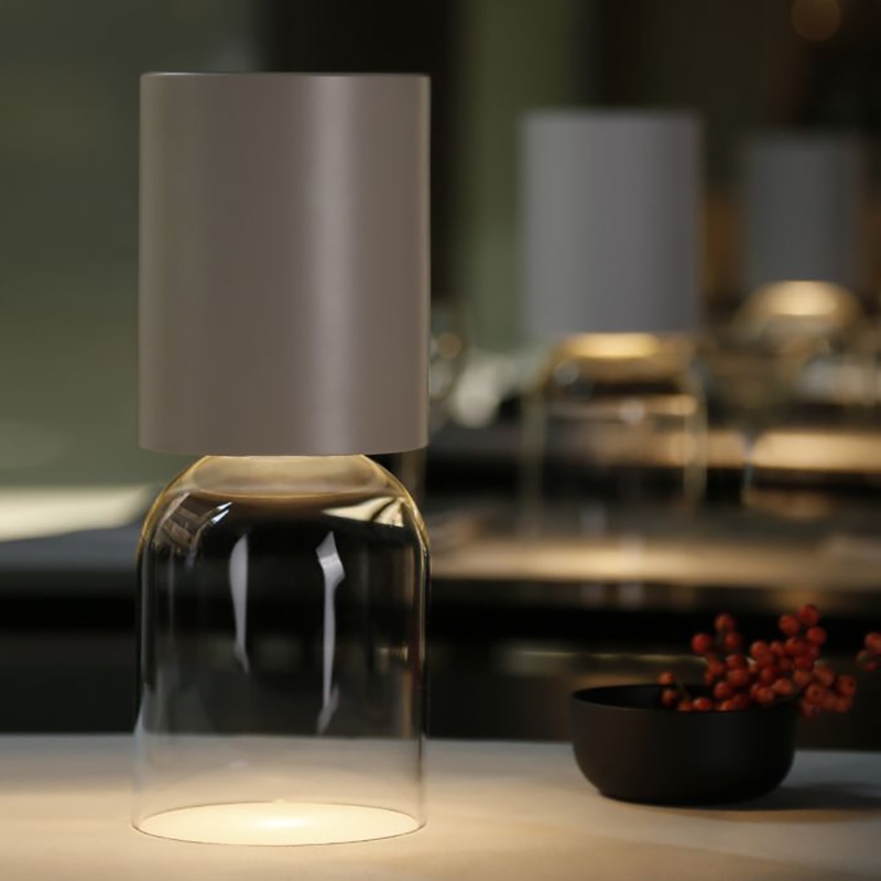 La lampe NUI Mini a une base en verre transparent, qui contribue à un jeu de reflets raffiné et diffuse une agréable lumière chaude. Elle est idéale pour les espaces intérieurs et extérieurs, elle fait belle figure au salon comme dans le jardin.