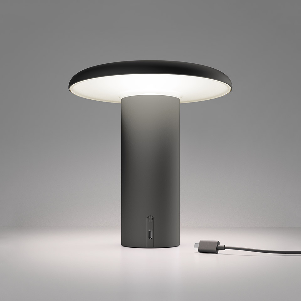Takku noir lampe de table rechargeable de Artemide – design Foster + Partners.