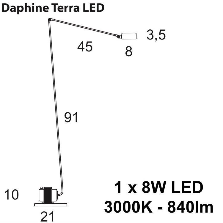 Source lumineuse: 1x 8W LED 3000K – 840lm – Dimmer + Double Switch