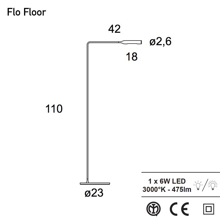 La lampe Flo Floor est équipée d’une source LED de haute qualité, qui permet d’obtenir une grande efficacité lumineuse tout en étant économique.