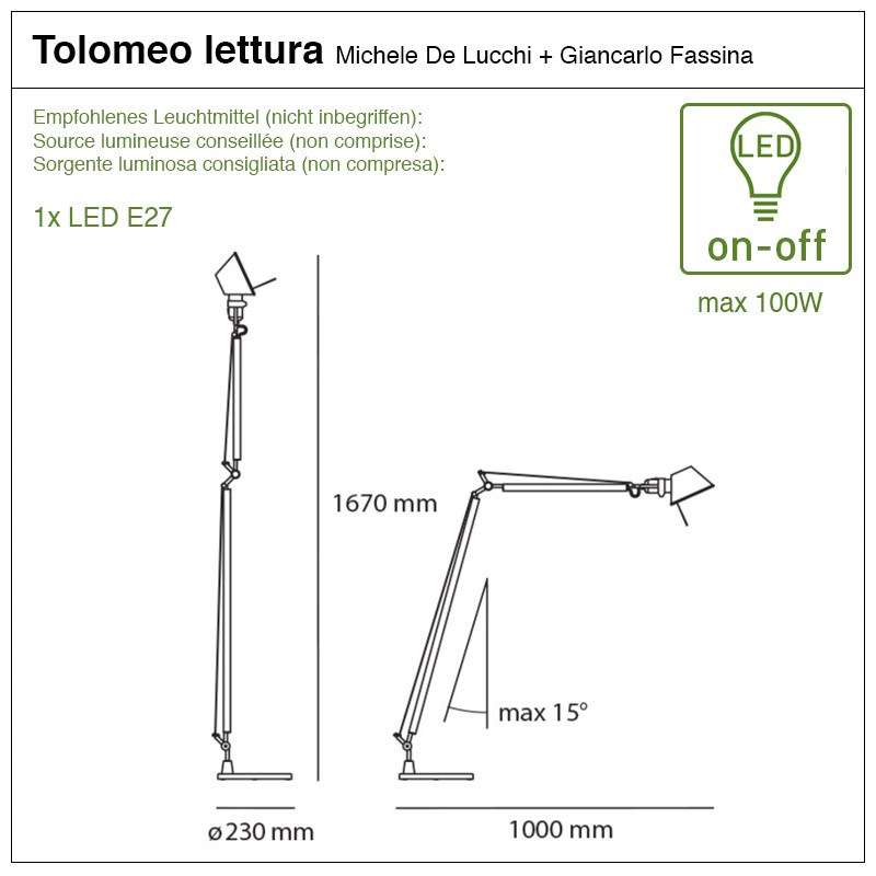 La lampe Tolomeo, lancée en 1987, est un classique du design de la marque Artemide. La série de luminaires Tolomeo avec le système d’équilibrage à ressorts a des bras réglables et est très flexible dans l’utilisation.